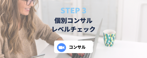英語コーチが個別コンサルをいたします。簡単な英語のレベルチェックと、ご希望のコースについて聞き取りをさせていただきます。